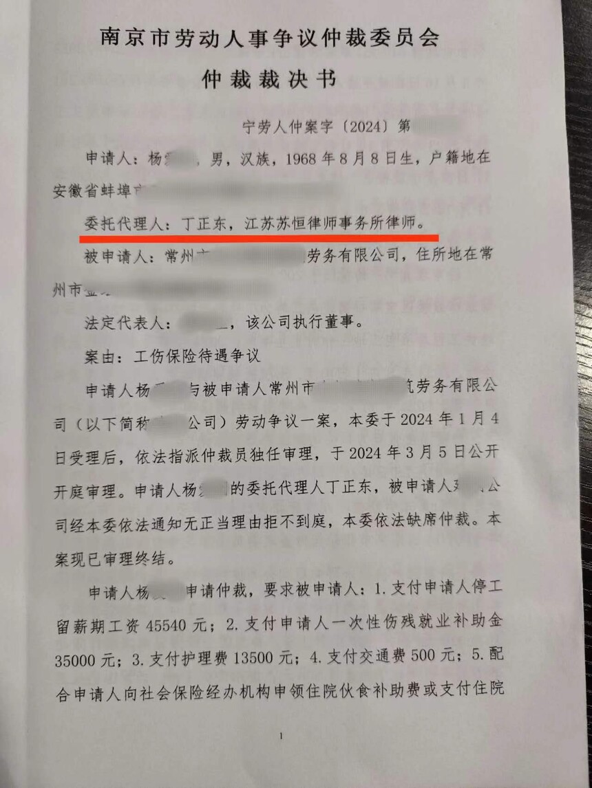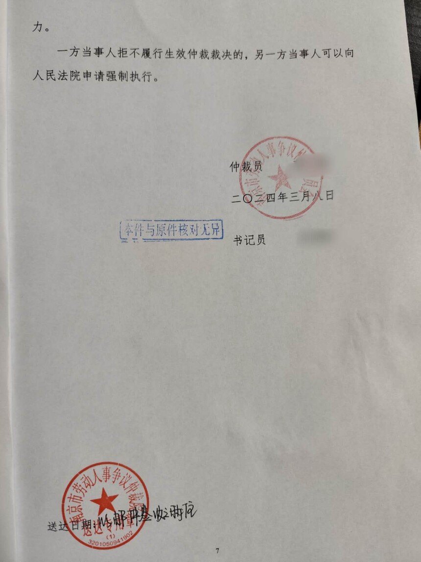 南京市劳动仲裁裁决书